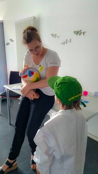 >>> Mit Herz und Hirn: Hanna Zwaka vermittelt jungen Besucher:innen nicht nur bei der Langen Nacht der Wissenschaft anschaulich, wie das Gehirn funktioniert – und erforscht mit ihrer Forschungsgruppe, wie Schlafmangel die Prozesse im Gehirn beeinflusst.